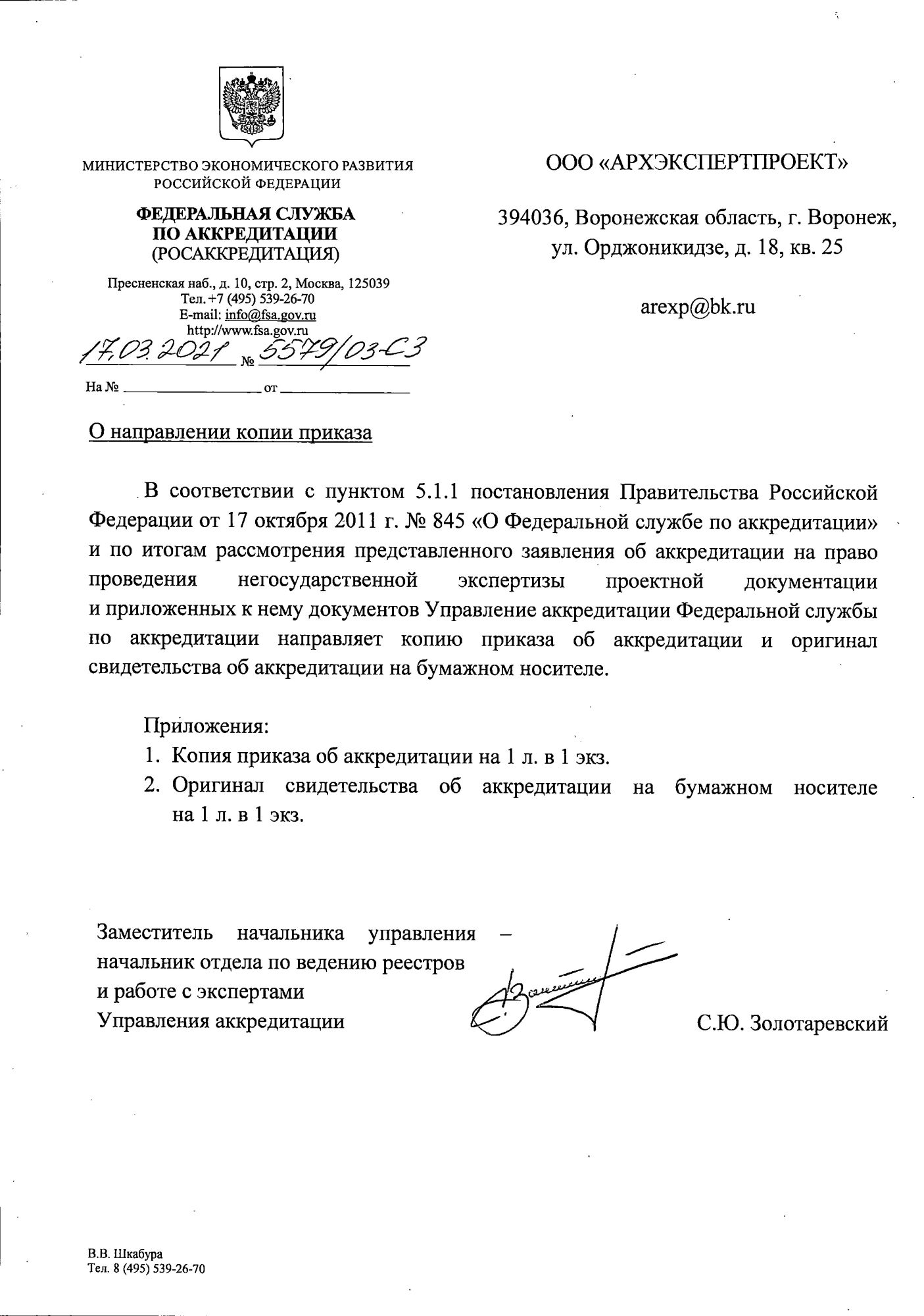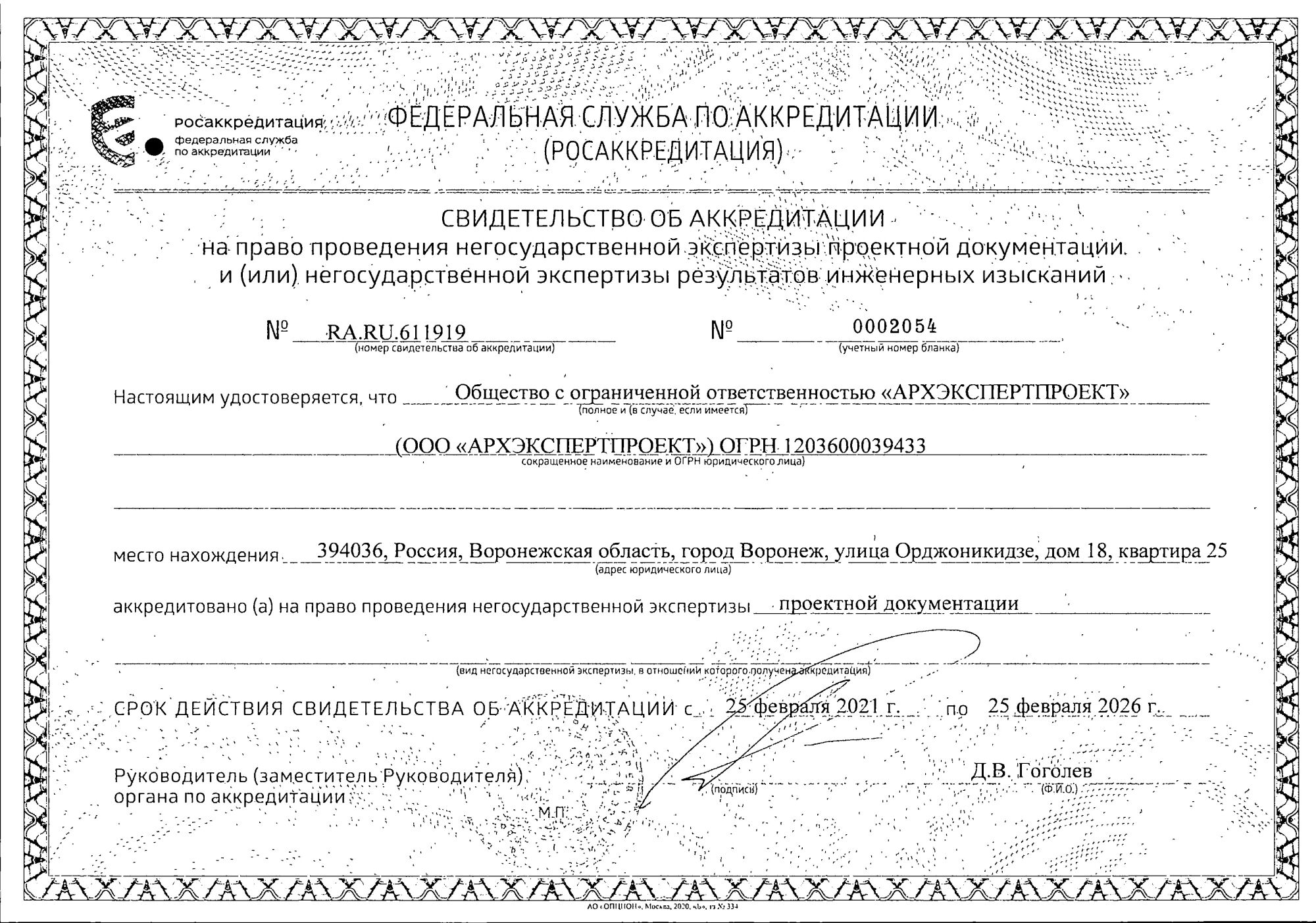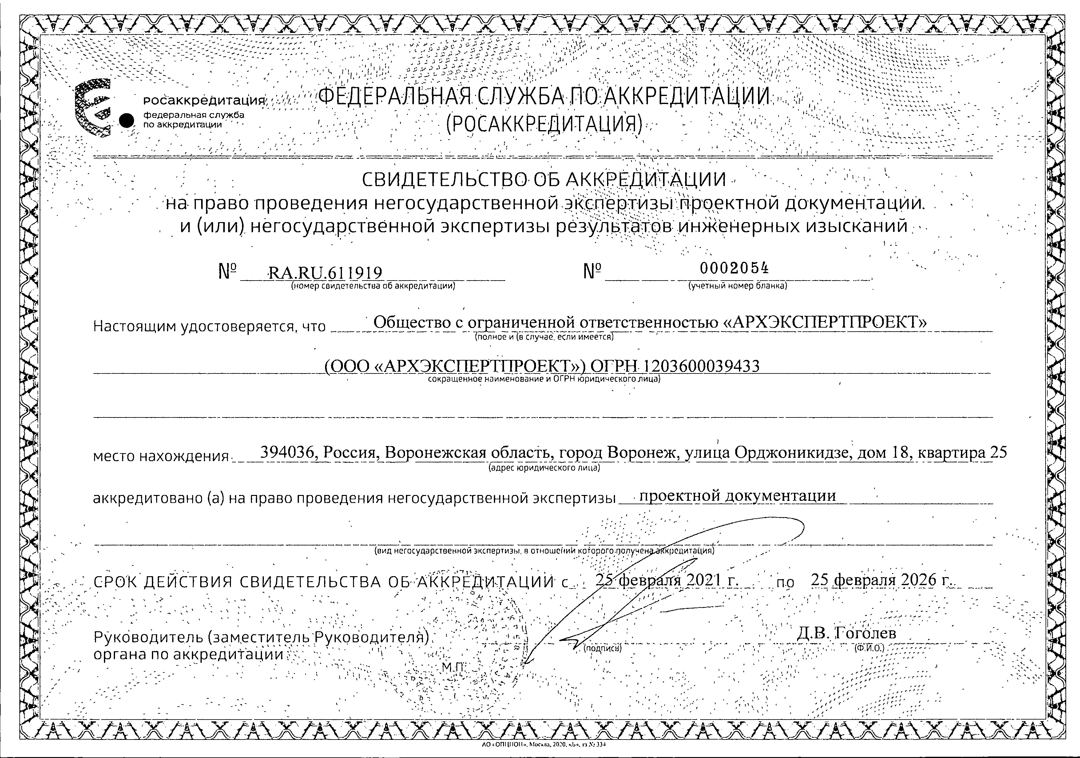 Свидетельство об аккредитации